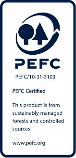 - Absorbent core: PEFC-certified defibrated cellulose and super absorbent sodium polyacrylate