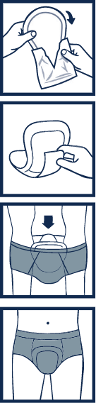 RU : Мужские урологические прокладки для одноразового использования – Медицинское изделие. Тонкая анатомическая форма. Защита от протеканий, запаха и влаги . Мягкое гипоаллергенное покрытие для ощущения комфорта и защиты кожи. Липкий край для крепления к повседневной одежде.![]()